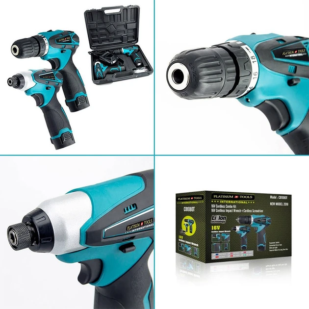 Набір з 2 шуруповертів на акумуляторах в кейсі та з насадками Platinum Tools CB1080T 18V